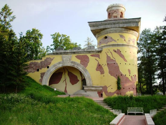 В Екатерининском парке города Пушкина, недалеко от Рамповой аллеи и Гатчинских ворот располагается один из необычных кирпично-каменных павильонов в стиле неоготики, называемый Башней-руиной.
