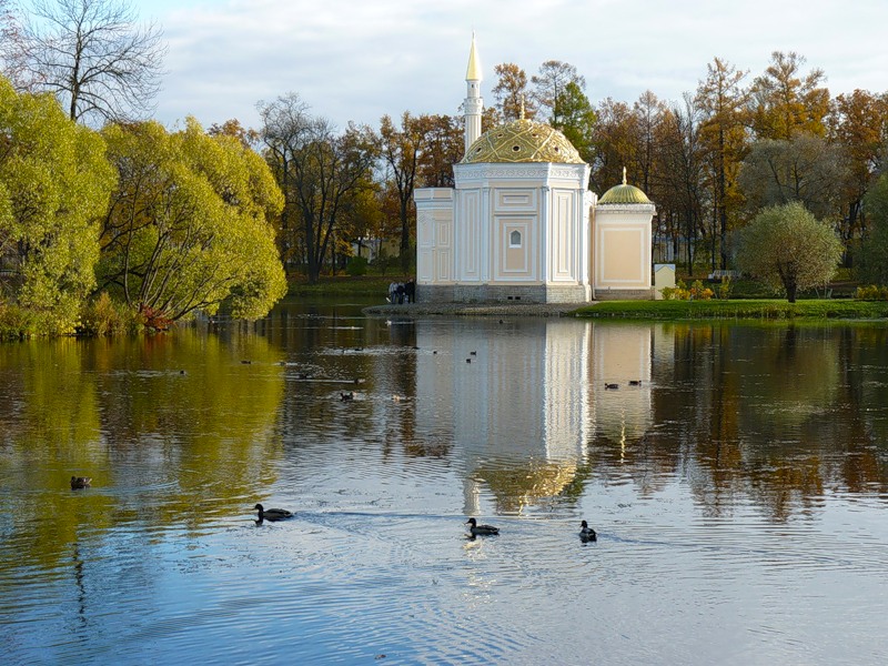 Здание Холодной бани и Агатовых комнат в Пушкине построено в классическом стиле архитектором Ч. Камероном в